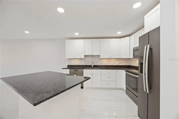 Inside, you’ll find an fully remodeled open floor plan that truly sets this villa apart. Open flow through through the kitchen, living, and dining areas out to water exposure and boat access make this home perfect for both everyday living and entertaining. The kitchen is a standout with granite countertops, white shaker cabinets, and all-new GE fingerprint-resistant appliances. The entire space is illuminated by sleek LED recessed and under cabinetry lighting, adding a bright, modern touch. All of this while still remaining high and dry through 2024. NO FLOODING!