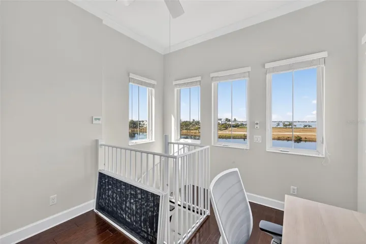 A rare feature of this Harbour Isle home is the third-story Observatory, showcasing sweeping views of the Gulf of Mexico, Anna Maria Sound, and the Sunshine Skyway Bridge. This bonus space makes a perfect reading loft, office, meditation room, or sunset-view retreat.