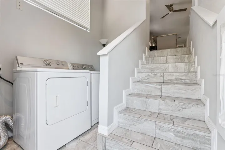 Upstairs is a, updated super charming, posh, and surprisingly spacious two-bedroom, two-bath apartment with its own separate entrance, featuring an exposed 90-year-old brick wall running the length of the kitchen, living room, and dining area! You’ll notice the large degree of natural light, and an open layout with room for a small office area and seating at the kitchen island. The kitchen features solid wood cabinets, solid-surface counters, stainless steel appliances, and neutral, easy-to-work-with finishes throughout.