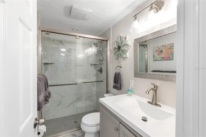 The spacious sun room serves as an ideal bonus living area and was upgraded with new windows and door, insulated ceiling panels, and new flooring in 2019, along with a new window A/C unit installed in 2025. The primary living spaces are furnished with quality pieces, including an adjustable bed in the primary bedroom and a Tempur-Pedic sleeper sofa in the living room, allowing this home to be enjoyed immediately upon arrival. Additional improvements include a new roof installed in 2022 with a 20-year warranty, a new vapor barrier underneath in 2024, a hot water heater replaced in 2021, and an A/C upgrade in 2019 to cool the sun room more efficiently. The home was termite-tented in October 2025 and comes with a transferable 10-year warranty, providing reassurance for years to come. The driveway was resurfaced with polyaspartic decorative chip coating in 2022, and the property also features decorative curbing added in 2021, a new Maytag washer and dryer installed in the shed in 2025, and a new outdoor shower added in 2024. Palma Sola Shores offers a welcoming coastal lifestyle with access to a heated pool, clubhouse, waterfront dock, and kayak launch, all for an incredibly low HOA fee of just $300 per month. Conveniently located near beaches, Robinson Preserve, grocery stores, restaurants, medical facilities, and SRQ airport, this home offers the perfect blend of comfort, updates, and location. Move right in and enjoy everything this beautifully renovated home and charming community have to offer.