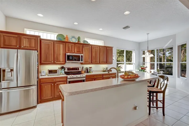 This lovely three bedroom, two bath with den home in gated Villa Rosa has been seasonally enjoyed by its current owners for the past 8 years. The property shows light and bright with the breakfast nook and great room overlooking the oversized, newly screened, private lanai with the Urfer Family Park as its backdrop. No neighbors behind you, just nature at its finest! You will love the open floor plan and appreciate the privacy the split bedroom plan provides to you and your guests alike. The property also boasts a separate dining room (currently being used as an office) and a versatile den where the artist in residence hones her skills. The master bedroom allows for access to the lanai and features two closets (one walk in) and an en suite bathroom with dual sinks, garden tub and separate shower. You will find no lack of places in this home for all your “stuff” with its extended garage and a bonus 6 x 16 air conditioned room which the original owners designed as an office. The current owners added shelving to it converting it to a very, large storage closet. Some other key highlights include new light filtering Hunter Douglas blinds in the breakfast nook and dining room, a queen size murphy bed in the third bedroom which conveys with the property, new air conditioner, hurricane garage door and hurricane shutters. The microwave, stove and refrigerator are only six years old and the washer, dryer and hot water heater are eight years old. The HOA provides lawn care and lawn maintenance and irrigation as well as recreational facilities including a heated spa and large community pool overlooking a lake. With its reasonable fees and convenient location, gated Villa Rosa is a great neighborhood to call home and offers easy access to shopping, medical facilities, restaurants, the interstate, UTC and the white sandy beaches of Siesta Key. Furniture can be purchased separately.