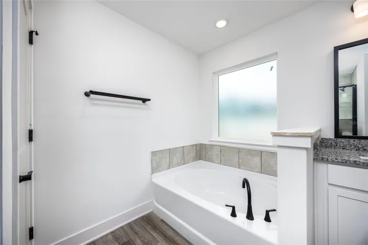 This beautifully designed 4 bedroom, 3 bathroom home features hardie siding, stacked stone accents, and timeless curb appeal. Inside, an open floor plan highlights luxury vinyl plank flooring, a spacious great room, and a formal dining area perfect for entertaining. The chef-inspired kitchen includes granite countertops, stainless steel appliances and plenty of countertop space. Step outside to a backyard with relaxing views ideal for gatherings or quiet evenings. The primary suite offers a large walk-in closet, double-sink vanity with granite countertops, a tiled shower and garden tub. Additional features for the home include an energy-efficient HVAC system, LED lighting, and a built-in pest defense system.