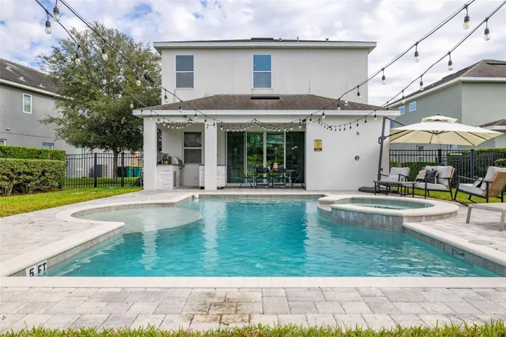 The southwest-facing pool is a major highlight, delivering sun throughout the day and into the afternoon, ideal for year-round enjoyment. The upgraded oversized pool features a sun shelf and spa, creating a true vacation atmosphere. An outdoor kitchen completes the backyard, making it perfect for entertaining, relaxing, and maximizing rental appeal.