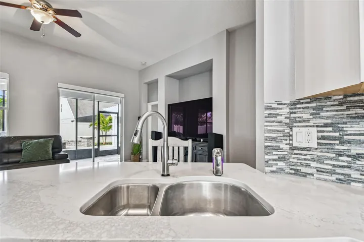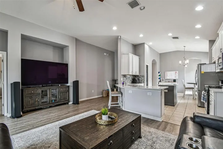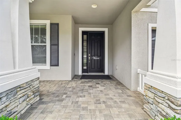 Welcome home! Don’t miss this stunning Taylor Morrison floor plan in the heart of Connerton! From the moment you arrive, the beautifully manicured lawn and charming craftsman-style exterior set the stage for this remarkable home. Step inside through the 8-ft front door and you’re greeted by soaring ceilings, upgraded flooring, and a meticulously maintained interior. Just off the foyer is a dedicated home office and the formal dining room, which features impressive ceilings and convenient access to the kitchen. A circular foyer with tray ceilings leads to a full bathroom, two secondary bedrooms, and the laundry room with garage access. Continue through to the expansive living room, designed for effortless entertaining with its open-concept layout. The living room and primary suite also feature custom Somfy Smart Motorized Blinds, offering comfort, convenience, and modern style with the touch of a button. This home is also equipped with a Vivint Smart Home Security System with cameras and a central control panel plus full Alexa compatibility across all smart-home features providing seamless control, added peace of mind, and modern connectivity. The spacious kitchen offers an eat-in nook, quartz countertops, luxury stone backsplash, and abundant cabinetry, providing both beauty and functionality. Tucked off the living room, the primary suite includes a large walk-in closet and a spa-like bathroom complete with a soaking tub, seamless glass walk-in shower, and dual vanities. Sliding glass doors open to your private outdoor oasis. Enjoy a screened-in lanai, paver patio, lush landscaping, a smart sprinkler system, an outdoor gas fire pit, and a charming pergola with a swing—perfect for relaxing or soaking up Florida sunshine! Residents of Connerton enjoy exceptional community amenities including a resort-style pool, splash park, playgrounds, parks, and tennis and basketball courts. This home combines luxury, comfort, smart-home upgrades, and the best of Florida living. Schedule your tour today!
