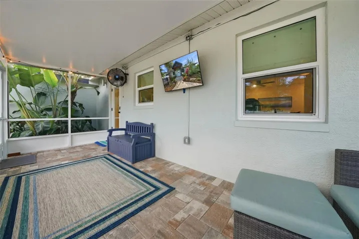 Step outside and experience true Florida living. A new vinyl fence encloses the yards and pool area, where the saltwater pool and fountain shimmer beneath the sun, surrounded by fresh landscaping, modern pavers, and a screened porch for shaded comfort. Two outdoor showers, a utility sink, and a dedicated dog wash station make beach days, gardening, and pet care effortless. Perfect for hosting or unwinding, this outdoor space truly delivers. Centered on a 12,000+ sq ft double lot, each side serves a purpose: North offers a lush front yard and seating area; East provides a carport, a new shed, and parking for multiple vehicles, RV, boat, and golf cart with gated pool access; West features a shelled dog run and extra parking pad; South includes additional yard space and a fully finished detached ADU with it’s own W/D, electric, water, and AC.