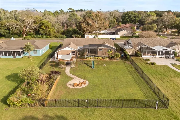 Outdoor living shines here with a 2020 TREX dock with boat lift and a unique bat house near the lake that provides natural mosquito control for year-round comfort. The partially fenced yard is perfect for pets and outdoor play while keeping a safe distance from the water.