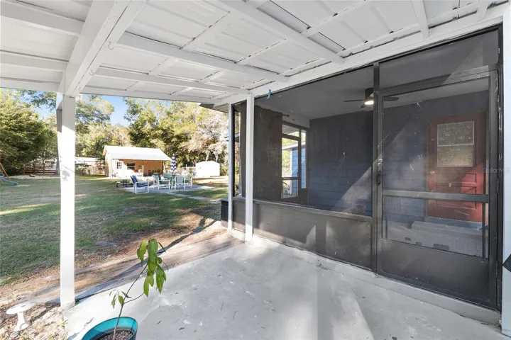 Situated on a Fully Fenced 0.61-Acre lot with a wooden fence, the property also includes an Additional approximately 400 sq ft Detached Structure built in 2024 (not permitted and not included in the total square footage). This structure is currently used as a Studio-Style Guest Space and features a Spacious Covered Porch, Metal Roof, its own AC unit, Kitchenette, and a Full Bathroom. Buyer to verify all uses and permitting. The detached structure also offers Standing-Room Attic Space, providing ample storage. This charming property offers versatility, space, and value in a growing area. The Zoning R2 allows some farm animals such as chickens and pigs offering you a special Mini-Farm Option. Close commute to Newberry (15 min), Gainesville about 20 minutes, and Ocala about 40 minutes. Sold AS IS with the right to inspect. Schedule Your Private Showing Today!