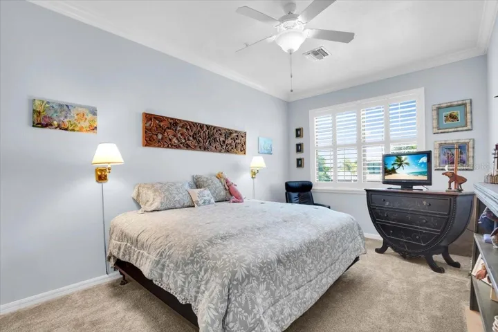 This well maintained with woodwork upgrades in this Oleander Coach Home, with water view, this home is ready for your complete enjoyment with the Florida lifestyle in Wellen Park. Rich amenities, gated community in Gran Paradiso. For those who worry about the stairs and would love to enjoy the high-ceilings there is a chair lift up the front stairwell for convenience. Wood front steps. With luxury crown molding, stainless steel appliances, granite solid surface countertops, tile floors (except bedrooms), with an electric fireplace plus windows with plantation shutters, you’ll have the best that Gran Paradiso represents. This coach home shows like a model and spacious 2187 sq. ft. of living space under air. The floor plan consists of a large living and dining area to the kitchen with a built in bench with glass table and table benches in dinette included in the sale. Expansive lanai with a stunning water view to watch the Florida wildlife. The spacious master suite accommodates a sitting area, his and her walk-in closets, en-suite with dual sinks, walk in shower and soaking tub. The split floor plan separates the guest wing with the 2nd and 3rd bedrooms, 2nd full-bath, and full laundry room. The kitchen is well equipped and boasts stainless appliances, stainless steel sink, solid wood 42” cabinets, crown molding, under cabinet lighting, breakfast bar and custom breakfast nook with bench storage. Ceiling fans, plantation shutters, solid wood foyer staircase, built in electric fireplace with stone facing with shelving, custom trim and decorator molding. Beautiful coffered ceiling in dining room. The three-car garage also has space for golf cart or to make it your workshop or hobby area. Gran Paradiso amenities include a resort pool, fitness center, walking trails, billiard room, library, Tuscan inspired clubhouse. For recreation use gorgeous pool with spa, sauna, steam room, tennis courts, pickleball, 2 basketball courts, playground and entertainment rooms with planned entertainments. Clubs and organizations abound and can be accessed through the full-time activities director. The quarterly dues include cable and wifi, landscaping maintenance, irrigation and landscape pest control, and total building maintenance. Annual CDD is included in taxes. Gran Paradiso is located in Wellen Park, Southwest Florida master planned community with shops, restaurants and activities and the new home of the Spring Training Facility for the Atlanta Braves. Most shopping close-by including a newly nuilt Costco Warehouse. Call for your personal tour today!