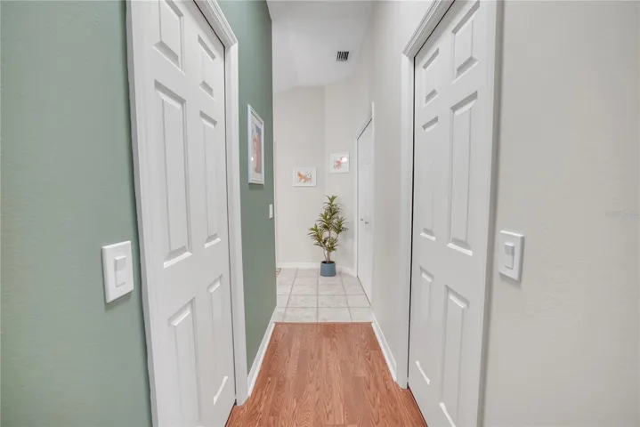 Additional designer features include: decorative driveway, low maintenance landscaping, shiplap walls, 3 solar tubes, luxury laminate flooring, and Ceramic upgraded tile, plantation shutters throughout, updated light switches and outlet plates, modern ceiling fans, and fresh interior and exterior paint, attic ladder with plenty of plywood, light and vent fan, large privacy screens in lanai(may use electric or roll down to operate) and front door screen for airflow on a beautiful day.
