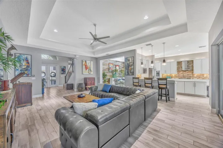 Absolutely STUNNING home with nearly 3800 sf of living space featuring 4 Bedrooms, 4.5 Baths, Club Room, Loft and split 3-Car Garage situated on a gorgeous preserve lot. The Carlyle Grande floorplan built by GL Homes is luxury living at it’s finest in The Ridge at Wiregrass Ranch, the premier community in the heart of Wesley Chapel. As you enter, you are welcomed by the soaring 2-story foyer and living room with expansive views of the lanai and preserve giving you a sense of tranquility. The gourmet kitchen features 42” white upper cabinets with crown molding, a center island, custom tile backsplash, natural gas cooktop, stainless steel range hood, stainless steel refrigerator and LOADS of counter space for cooking or entertaining. The kitchen opens to the spacious family room so you feel part of the action! The family room is spacious enough for your sectional sofa and features a trayed ceiling and plenty of natural light. A wall of sliding glass doors lead to the oversized lanai with Brazilian travertine tile. Relax by the custom outdoor bar (complete with beer kegerator) or soak in the hot tub and enjoy the views of the preserve. This is the PERFECT ENTERTAINING home! Inside, the PRIMARY Suite is located on the main floor and features dual walk-in closets w built-in shelving, trayed ceilings and a luxurious en-suite bath with garden tub, separate oversized shower, separate his/hers vanities with granite counters and undermount sinks. The 2nd bedroom is located on the main floor and features an en-suite bath – perfect for guests! The main floor also features the 3rd bedroom (very spacious!), 3rd full bath and club room which can be used for a home office (as it currently is), game room, or perfect in-law living space. Upstairs you’ll find the 4th bedroom with en-suite bath and large walk-in closet and the loft – perfect for the 2nd living space! The home is also equipped with a whole-house water softener as well as whole-house Generac generator and plantation shutters throughout. The Ridge is a luxury community in Wesley Chapel centrally located on SR 56. Amenities at The Ridge include an 11,500 sf indoor clubhouse located on 5.5-acres. The clubhouse features an event room, an indoor sports complex, game room, movie theatre, fitness center, and kitchen. Outdoors boasts 4 lighted clay tennis courts, basketball, sand volleyball, resort pool with beach entry, lap pool, fire pit, and water play area. The community is minutes from the Shoppes at Wiregrass, Tampa Premium Outlets, 3 local hospitals, restaurants and Top-Rated Area Schools. Call today for your opportunity to view this home!