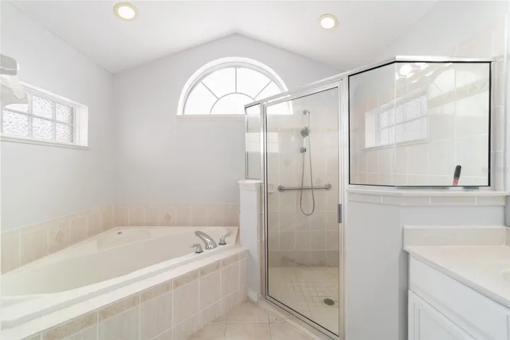 The primary suite is generously sized and includes double closets along with direct access to the lanai through sliding doors. The en-suite bath feels like a private retreat, complete with a WALK-IN SHOWER and a relaxing SOAKING TUB. A desirable split-bedroom layout places two additional bedrooms and a second full bath on the opposite side of the home, offering comfort and privacy.