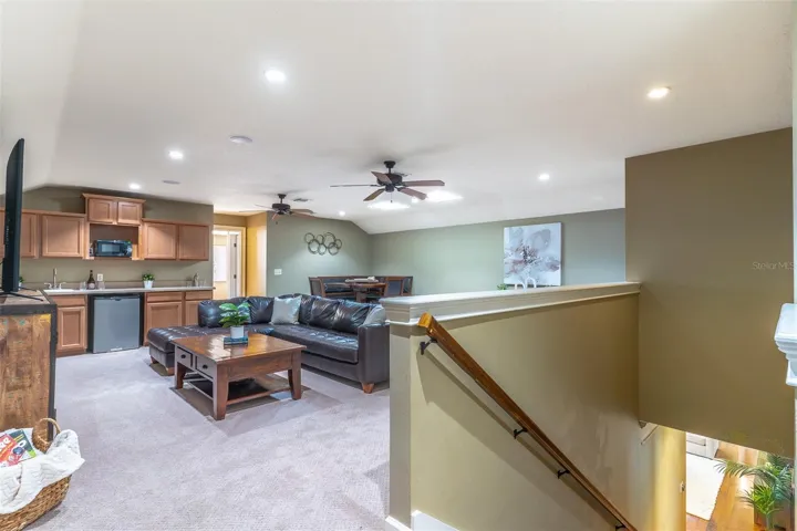 Upstairs, the home continues to impress with an oversized loft and a private en suite bedroom featuring a walk in closet and its own kitchenette. This level functions beautifully as a guest retreat, secondary primary style suite, or flexible living space that feels intentionally separate from the main floor.