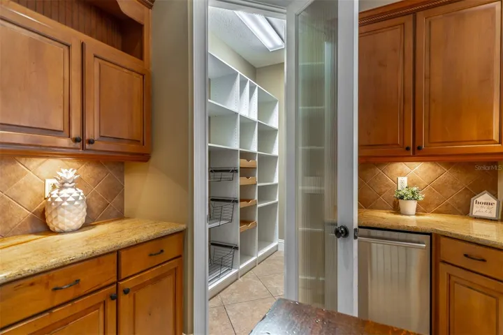 Outdoor living remains a focal point of the home. Covered and open patio spaces surround the pool, complemented by an outdoor kitchen suited for entertaining or quiet evenings at home. A private, tree lined walk winds through mature cypress, leading to the dock and boat lift and offering peaceful, direct access to the lake without sacrificing the home’s sense of seclusion.