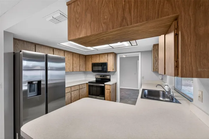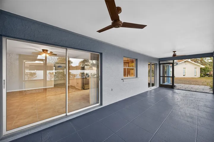 PEACEFUL SETTING & CURB APPEAL. Well maintained concrete block home situated at the end of a quiet cul-de-sac, providing a tranquil environment. Wide, roomy streets and sidewalks throughout the neighborhood provide an open and inviting feel, perfect for leisurely walks and enjoying the surroundings. Upon entering the community, decorative flags surround the central pond, offering a charming first impression just off Lake Shore Boulevard. 3 bedrooms, 2 bathrooms with a two-car garage offers 1,590 square feet of heated living space and approximately 2,480 square feet total under roof, situated on a just under quarter acre lot in a non-required flood zone. Major updates include a NEW ROOF installed in January 2026, along with FULL INTERIOR & EXTERIOR painting completed January 2026. All ceilings have had the popcorn finish REMOVED and replaced with a modern texture. New electrical ceiling fans were installed in the primary bedroom and living room. A Sentricon termite bait system was installed in 2024. Features to consider; The home has multiple pocket doors thoughtfully placed throughout, providing flexibility and privacy, offering a quiet retreat when desired. There are gutters and downspouts, exterior flood lighting, and decorative pavers located just off the primary bedroom. Glass sliding doors provide natural light and seamless outdoor access from the dining area, kitchen, and guest bedroom. The eat-in kitchen offers a comfortable casual dining space. UPGRADED kitchen appliances. The garage has a freshly painted floor and includes an automatic garage door opener, a utility sink, and a convenient side access door. The primary bedroom features a private bathroom, walk-in closet measuring at approximately 10x 6 along with glass sliders out to the backyard. The screened porch measures approximately 28X10 and provides an estimated 267 square feet of additional living area, ideal for relaxing or entertaining. An extended driveway offers ample parking for family and guests. WASHER & DRYER included. Additional highlights include low HOA dues, no CDD fees. FENCING ALLOWED. Prime location being minutes to US Hwy 19., close to Hudson Beach, hospitals & medical offices, major chain stores and more. Buy a Little Piece of Florida Now.