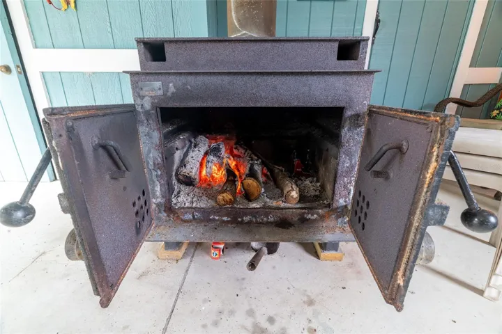 The home includes all furnishings, washer and dryer, and a lawn mower. Three sheds are located off the backyard patio. The covered patio features a cast iron fireplace imported from Canada and is ideal for entertaining. The backyard offers ample space for relaxing or hosting guests.