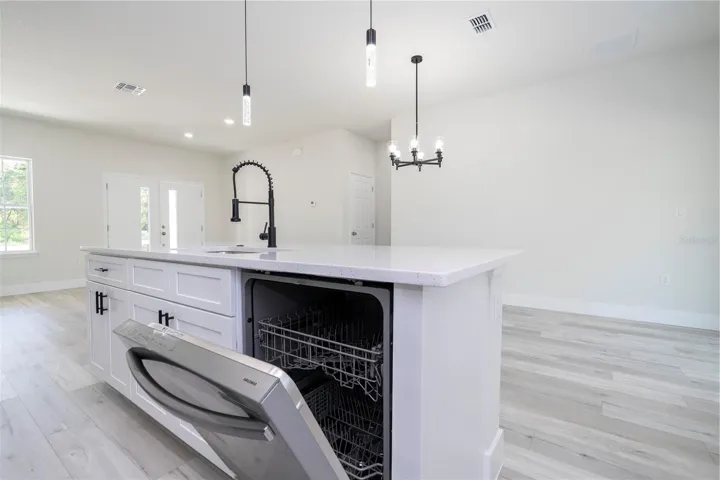 BRAND-NEW CONSTRUCTION, MOVE-IN READY! Discover this stunning and spacious 3-bedroom, 2-bath home with a 2-car garage, thoughtfully designed for comfort and modern living. Step onto the inviting covered front porch and through the elegant double entry doors into a bright and open floor plan. The living area is at the front, while the kitchen and dining spaces flow seamlessly toward the back, creating the perfect space for entertaining. This home boasts luxury vinyl plank flooring, quartz countertops, stainless steel appliances, 42″ cabinets with crown molding, and a large kitchen sink. The spacious island with a breakfast bar and built-in pantry add both style and functionality. A separate indoor laundry room. The primary suite is a bright and airy retreat, featuring two windows for natural light, a generous walk-in closet, and an ensuite bathroom. The primary bath is designed with dual sinks, a tiled shower, and a water closet. The second and third bedrooms are situated on the opposite side of the home, with a stylish guest bathroom between them, complete with a quartz countertop and tiled tub surround. Through the sliding glass doors, step onto the expansive covered lanai, spanning over half the width of the home, and enjoy outdoor relaxation. Enjoy morning coffee on the front porch and sunsets from your lanai in the evening. Located near the Withlacoochee Trail, Withlacoochee River, golf courses, and Gulf Coast boat ramps, this home offers the perfect blend of tranquility and adventure. Schedule your showing today, you won’t want to miss this one!