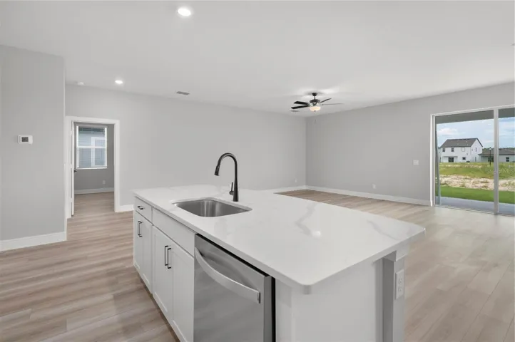 Pre-Construction. To be built. Welcome to the Azalea at Gum Lake Preserve — a beautifully designed four-bedroom, two-bath home that perfectly blends modern upgrades with everyday comfort. This open-concept layout creates a bright and inviting atmosphere, with a spacious family room ideal for relaxing evenings or hosting guests. The chef-inspired kitchen is the heart of the home, featuring quartz countertops, stainless steel appliances, a classic subway tile backsplash, sleek white cabinetry accented with matte black hardware, and a large island with a breakfast bar for casual dining. A designated dining area offers the perfect space for family meals and special celebrations.
