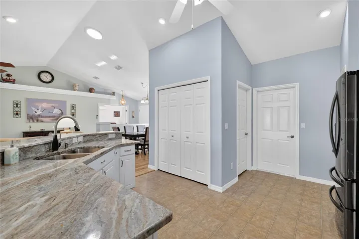 THIS CEDAR 3/2 Model with a DEN boasts a NEUTRAL COLOR PALETTE throughout.The KITCHEN has BEAUTIFUL GRANITE COUNTERTOPS, WHT 42″ CABINETS,VINYL FLOOR, UPDATED APPLIANCES-(including a DOUBLE OVEN /CONVECTION MICROWAVE ), PANTRY, AND COAT CLOSET.There are NO CARPETS in this HOME.The DEN has a MINI SPLIT for extra COMFORT.The LIVING AREAS are OPEN CONCEPT and have DURABLE LAMINATE FLOORING. The LARGE MASTER BEDROOM has VIEWS of the GOLF COURSE and a SLIDING GLASS DOOR onto the ENCLOSED LANAI. The MASTER BATHROOM features a DOUBLE VANITY, COMFORT TOILET,TILED SHOWER AND LARGE WALK-IN CLOSET. The SECOND GUEST BEDROOM has a built in closet and VIEWS of the GOLF COURSE with access to a PATIO via a SLIDING GLASS DOOR.The THIRD GUEST ROOM has a BUILT IN DESK w/SHELVES and a CLOSET. The LANAI is ENCLOSED with LOW-E DOUBLE PANE WINDOWS(Life Time Warranty ) and the VIEW is MAGNIFICENT.The 2- CAR GARAGE with a GOLF CART GARAGE is generous in SIZE and has WIFI GARAGE DOOR OPENERS,GARAGE SCREENS, SINK and WALL CABINETS. OTHER FEATURES INCLUDE: 2-HVAC UNITS-(2018)~HOME WAS PAINTED OUTSIDE -(2025)~ROOF-(2022)~40 GALLON HOT WT HEATER-(2017)~ENCLOSED LANAI (2024)~VIDEO DOORBELL~ 8-SECURITY CAMERAS~HONEYWELL ALARM SYSTEM(with no monthly fee)~WIFI THERMOSTATS ~ SOLAR TUBE, 2-ATTIC ACCESSES~ELECTRIC PANEL W/WHOLE HOUSE SURGE PROTECTION~ ELECTRIC PANEL IS WIRED FOR A GENERATOR(PORTABLE GENERATOR NOT INC)~HOT WATER RECIRCULATION PUMP~FIRE PROOF WALL SAFE~2 HIGH DEFINITION TV’S.You will find Easy Access by Golf Cart to GOLF, SHOPPING, and RESTAURANTS!!!! DON’T WAIT, CALL TODAY TO SEE THIS WONDERFUL HOME and BEGIN LIVING IN THIS AWESOME 55+ COMMUNITY!!!!!