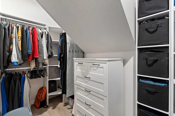 This immaculate move-in ready home features a mother-in-law / guest ensuite on the main level, as well as a large 2nd story loft! TOUR THE HOUSE WITH THE VIRTUAL TOUR AND VIDEO WALK THROUGH LINKS. As you pull up to the home, the gorgeous paver driveway and deep lot with no rear neighbors will grab your attention. Inside, you’ll quickly note the care the current owners have for the house, including having placed luxury vinyl floors, painted the interior to match a variety of modern design tastes, and installed closet organizers, elegant ceiling fans, and fixtures throughout the home. Step in to the sparkling kitchen, where the family cook will love preparing meals among the 42” cabinetry, oversized island, stainless steel appliances, wine fridge, herringbone tile backsplash, and closet pantry. The kitchen also features ample space for a dinette, and overlooks the family room, providing a great place for entertaining and spending time together. Enjoy your morning coffee on the screened patio or watch the little ones play in a backyard that seems to go on forever! Then retreat to the primary suite, where a dual-sink vanity, tiled shower, and large custom walk-in closet won’t disappoint! The house boasts a desirable triple-split floorplan, where two other sizable bedrooms surround a second full bath near the front of the house, then down its own private hallway a 4th bedroom with its own en suite bathroom will delight guests or a family member needing additional privacy. For those buyers looking for that extra space for an exercise room, at home office, game room, or 2nd family room, you’ve found the right house! Upstairs a spacious loft awaits as a versatile space to use how you see best. Other highlights of this home include stunning epoxy finish in the garage, pull-down attic access with board installed for extra storage, as well as smart home features, including garage door, video doorbell, and Ecobee thermostat. The Overlook at Grassy Lake provides a sparkling neighborhood pool and playground for you to relax and spend time with friendly neighbors. Close to schools, Publix, Starbucks, restaurants, and the trail – this home is located right where your family wants to be with easy access to SR 50, US 27 and Florida’s Turnpike. Save yourself the headache of dealing with new construction delays. This home offers the perfect blend of style and functionality. Don’t miss the opportunity to make this exceptional property your new home today!