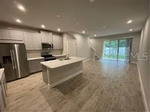 Marianna plan with 3 bedrooms, 2.5 baths, 2-car garage and large loft. This open floor plan offers a dine in kitchen with breakfast bar. Stainless steel appliances, Linen cabinets and Dolce Viatera Quartz counter tops really make this kitchen pop. Main level is all open kitchen, dining and gathering room with a half bath. Debary 7 x 22 plank flooring covers your main living area flooring on the first floor, carpeting for your bedrooms/loft, tile in baths. Large lanai out back has paver flooring and is screened in. Owner’s suite is up, with two other bedrooms, separated by a large loft. Owner’s suite with bath featuring a shower, dual sink vanity and two walk in closets. The two other secondary bedrooms both have walk in closets and share a hall bath with dual sink vanity. Laundry room is also located upstairs.
