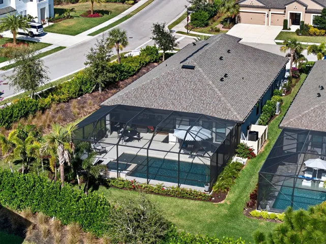 Step outside to your private backyard oasis, where luxury truly comes to life. Enjoy a custom-designed pool and spa, a covered outdoor kitchen complete with built-in grill and refrigerator, and an outdoor gas fireplace that transforms evenings into unforgettable experiences. A battery-operated lanai shade on the rear slider enhances comfort, while the expansive screened enclosure creates a resort-style atmosphere ideal for year-round enjoyment.
