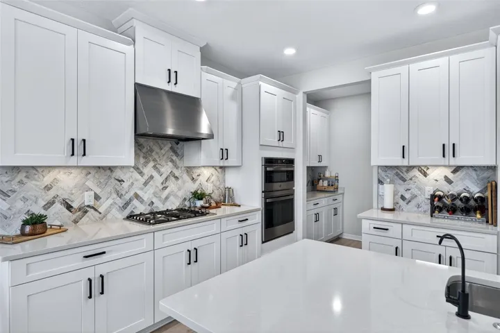 The gourmet kitchen is both beautiful and functional, featuring a gas cooktop, oversized center island, butler’s pantry, and a dedicated drinking water filtration system—perfectly suited for entertaining or everyday luxury. Seamless flow into the living and dining areas makes hosting effortless and inviting.