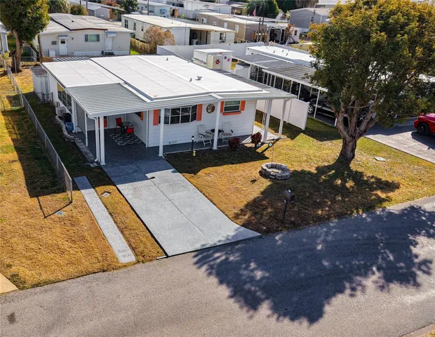 The galley kitchen includes newer appliances and a built-in bar/storage area, adding both functionality and charm. Recent upgrades include a new membrane roof (2025) and A/C (2022), Painted Driveway offering peace of mind for years to come. Outside, the pet-friendly fenced yard is ideal for relaxing or enjoying private outdoor time.