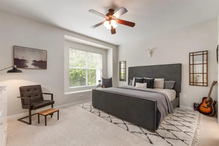 Welcome to 19204 Weymouth Drive, where fresh, clean, and an undeniable sense of pride is evident in every corner, including a NEW A/C (2025) system for added comfort and peace of mind. This well maintained villa offers THREE FULL BEDROOMS, two bathrooms, PLUS A DEN, OFFICE that has been used as a 4th bedroom, along with a two car garage. The exterior has been recently painted, with maintenance covered by the association, adding to the ease of ownership. Nestled within the gated community of Weymouth in Oakstead, this neighborhood is known for its quiet streets and highly rated schools. Balancing privacy and community living, it captures the charm of effortless, maintenance free living. Community amenities include a clubhouse with two party rooms, pool, three tennis courts, a volleyball court, a playground, a ball field, a basketball court, a fitness center, and scenic walking trails. The villa features a well designed split and open concept floor plan with an abundance of natural light, high ceilings, new stylish light fixtures, ceiling fans, and recessed lighting that enhance the ambiance throughout. Near the front entrance, the flexible den, office, previously utilized as a 4th bedroom, is centrally located and accessible through French doors, making it ideal for a bedroom, office, playroom, or gym. Enjoy a blend of comfort and durability with newer carpeting in all rooms, complemented by tile flooring throughout the main living areas. The family, dining room combo opens seamlessly to the kitchen, which features an eat in breakfast bar, newer sleek stainless steel appliances including a gas range, microwave, refrigerator, and dishwasher, as well as 42 inch cabinetry with matte black hardware that perfectly complements the fixtures. Tranquil views pour in through the dining room’s expansive window, accented by wall sconces that cast a warm glow. Just beyond the kitchen, a versatile nook offers flexibility as a sitting area or workspace, overlooking nature and the nearby pond, with patio access through a three pane sliding glass door. The patio provides private yet unobstructed views of the rear conservation landscape. The primary bedroom is thoughtfully separated from the main living areas and guest rooms and includes a walk in closet and en suite bathroom with dual sinks and a walk in shower. Relax in the cozy window nook while enjoying peaceful conservation views, you may even spot local wildlife. On the opposite end of the home, the guest bathroom has been tastefully updated with a new vanity, stone countertop, faucet, mirror, and light fixture. The two guest bedrooms are conveniently located nearby and feature newer carpeting and ceiling fans. A centrally located laundry room adds everyday convenience. Ideally situated near State Road 54 (5 mins), Veterans Expressway (18 mins), shopping (5 mins), restaurants (5 mins), and more, this move in ready home is not to be missed.