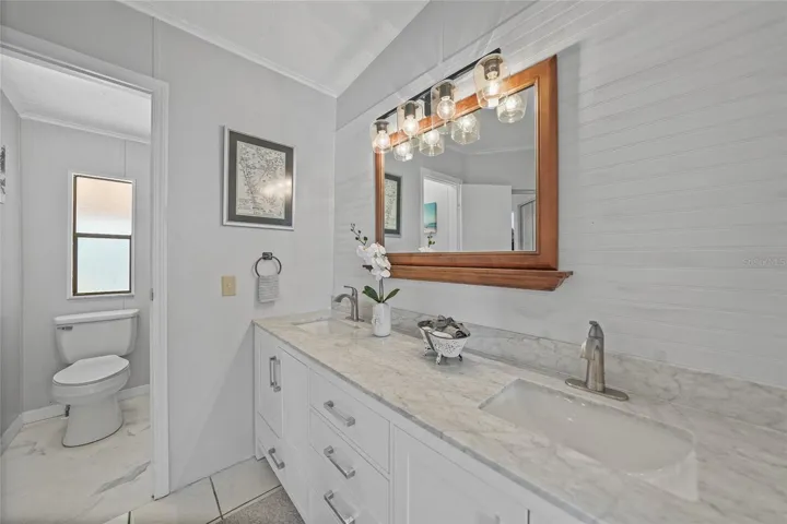Lowest-priced waterfront property on the market. Updated, modern turnkey home offered furnished and move-in ready for immediate enjoyment. Perfectly situated on Lake Dolphin in the premier 55+ gated community of Harbor Isles. 2023 metal roof, 2023 Carport and Shed, 2022 A/C; offering peace of mind, durability, and long-term value. This home offers unobstructed, panoramic views of Lake Dolphin and is just 0.1 miles from the community boat ramp and kayak launch. The modern kitchen opens to a spacious living area ideal for entertaining, featuring an oversized island, new stainless steel appliances, a wall oven, and cooktop. The primary bedroom offers an ensuite updated bathroom and two walk-in closets, while the guest bedroom includes its own ensuite bathroom and walk-in closet, providing comfort and privacy for residents and guests. Spacious, long, and wide carport with plenty of parking, complemented by an oversized shed featuring a conveniently located washer and dryer. Harbor Isles is a premier, gated 55+ community situated along the scenic Myakka River, just minutes from the Gulf of America. LOW HOA $196 a month. NO LOT Rent. Residents enjoy an impressive array of amenities, including a heated pool and spa, state-of-the-art fitness center, tennis and pickleball courts, bocce and shuffleboard, an expansive clubhouse, library, and a marina offering boat and kayak access to the Gulf. This pet-friendly community features a vibrant social calendar with clubs and activities for every interest, making Harbor Isles the perfect place to enjoy an active and relaxed Florida lifestyle. There is plenty of wildlife to enjoy; herons, egrets, cranes, ibis, parrots, even alligators and manatees! Conveniently located within minutes of Downtown Wellen Park, Costco, shopping, restaurants, and a short drive to beautiful Gulf Beaches. Schedule a viewing today and make this dream home a reality!