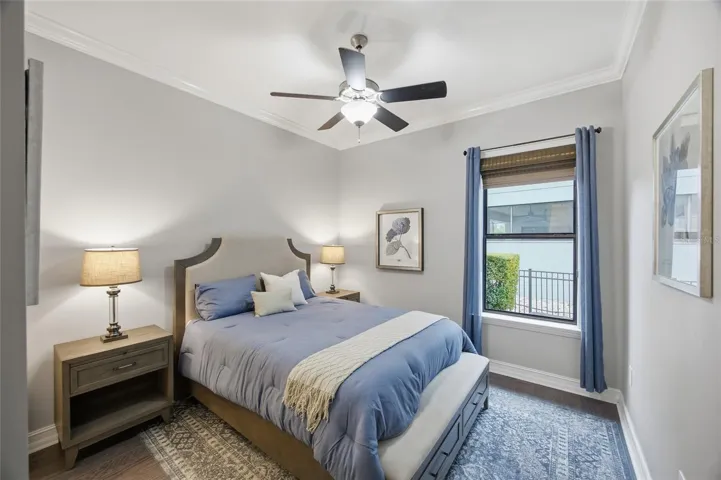 Upgrades galore in the sought-after Hamilton model located in Estancia’s exclusive, gated Treviso community in Estancia at Wiregrass! This exceptional executive home offers 4BR/3BA/3CG with a tile roof, brick paver driveway, and a stunning Acadian iron front door welcoming you in. Step into the spacious entry and enjoy a straight-through view to the private conservation backyard and expanded outdoor living. The backyard is a true showstopper featuring layered brick paver patios and walkways, a 52” remote-controlled firepit, lush upgraded landscaping with lighting, a rock garden with water feature —creating a resort-like setting visible from multiple windows.