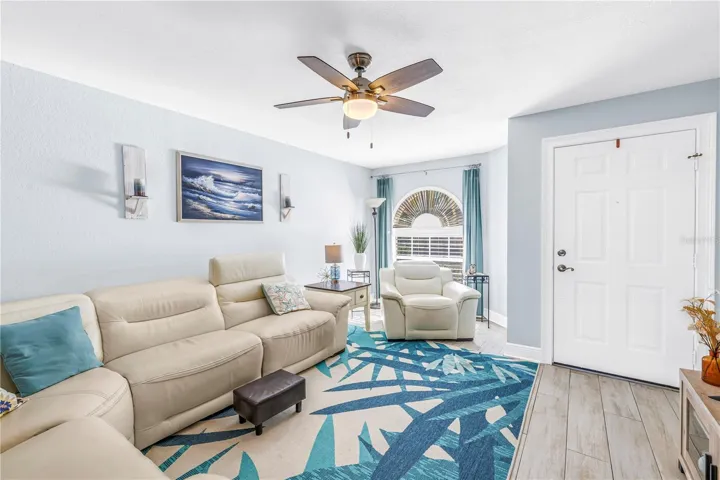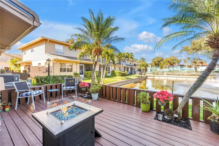 An amazing opportunity to enjoy carefree living in an Antigua Townhome! This 3-bedroom, 2½-bath pond-view home truly has it all. Light and bright, the welcoming interior features beautiful tiled flooring throughout the first floor and a spacious living area that seamlessly opens into the family room and dining space. French doors off the family room lead to a generously sized, fenced deck overlooking the pond, perfect for hosting gatherings with family and friends. The beautifully updated eat-in kitchen boasts quartz countertops, abundant storage, a coffee bar, and charming window seating, complemented by recessed lighting and large windows that fill the space with natural light. A laminate staircase leads to the second floor, where laminate flooring continues throughout the bedrooms. The primary bedroom offers a screened-in balcony for morning or evening relaxation with tranquil pond views, along with a large walk-in closet and an ensuite bathroom featuring a walk-in shower, dual sinks, a lighted mirror, and a linen closet. The second and third bedrooms are generously sized with large dual closets, and the guest bathroom features a newly updated vanity and mirror. An additional linen closet is conveniently located in the hallway. Additional features include ceiling fans, stainless steel appliances, and a newer A/C system installed in 2023. For added convenience, the home includes a first-floor laundry closet with shelving and a spacious one-car garage. The community features a heated and cooled pool with bathrooms and a convenient changing area, offering an inviting amenity for year-round enjoyment. Ideally located, Madeira Beach is just a 15-minute drive, with easy access to Seminole City Center, St. Petersburg–Clearwater International Airport, Tampa International Airport, and an abundance of nearby shopping, grocery stores, dining, and entertainment options.