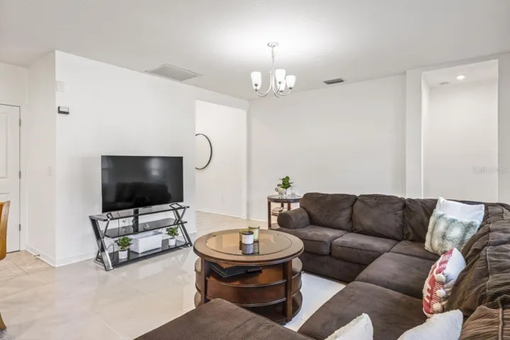 Step through the front door and into an open, inviting layout featuring durable tile flooring throughout the main living areas. The heart of the home is the stylish kitchen, designed for both everyday living and entertaining, with espresso-finished cabinets, upgraded stainless steel appliances, granite countertops, a breakfast bar, and a spacious closet pantry. The dining area flows seamlessly into the living space, creating the perfect gathering spot for family and friends.