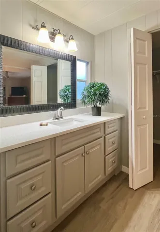 Look no further—this exceptional, completely renovated home offers a prime golf course location with rare side-by-side parking, combining luxury, comfort, and peace of mind. Thoughtfully updated from top to bottom, the home features a new vapor barrier (2025), new HVAC ductwork, A/C installed in 2024, and a roof-over completed in 2020. The stunning new kitchen showcases all-new cabinetry, brand-new appliances, a center island with elegant quartz countertops, and flows seamlessly into the living space. The home is fully furnished, boasts all-new flooring installed over ¾-inch plywood with luxury vinyl plank, and includes new plumbing, a new water heater, and mostly updated electrical where needed. Additional upgrades include new interior doors, an upscale sliding door from the primary bedroom to the Florida room, new windows throughout (excluding the already newer Florida room windows), a completely renovated hall bathroom, and a primary bathroom with a new vanity and sink. Truly turnkey, this property is ideal as a full-time residence, seasonal retreat, or income-producing rental.