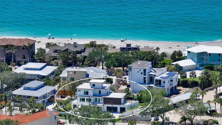 With gulf views, and walkable private beach access, this New Construction Modern Beach House on Siesta Key by M&J Pham Development mixes a sought-after location with modern luxury. Experience the best of coastal living in this brand-new 4 bed, 4.5 bath home with walking access to Turtle Beach. With 3,676 SF of thoughtfully designed space, this home offers breathtaking 360-degree ocean views, multiple outdoor patios and terraces, and seamless indoor-outdoor flow.