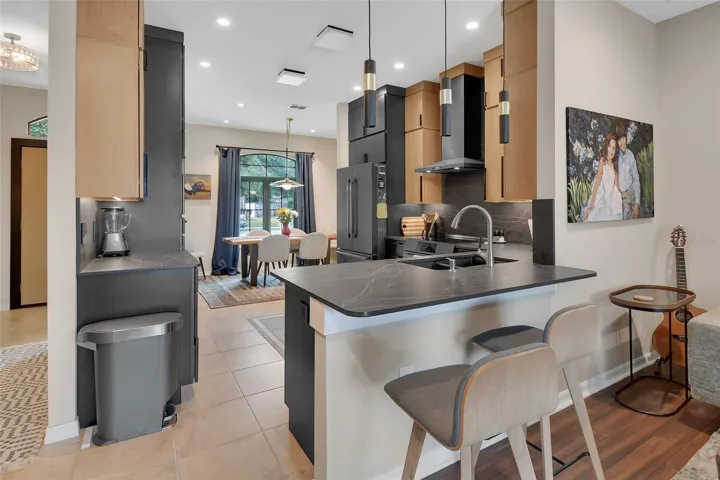 The Heart of The Home Is Truly the Professionally Designed Custom Kitchen Showcasing Kraft Maid Flat-Panel Cabinetry with Dove-Tail Construction, New Quartz Countertops with Full Height Backsplash, Designer Lighting, And Under Cabinet Lighting with Adjustable Color Temperature. Bosch 800 Series Black Stainless-Steel Appliances Include an Induction Range & Convection Microwave, Complemented by an Exterior-Vented Range Hood, Deep Composite Sink, And Quiet Insulated Disposal. The Living Spaces Are Warm & Inviting with Recessed Lighting Added Throughout the Home, Including Upgraded Designed Fixtures in Key Areas. The Primary Suite Includes an Expansive Custom Closet System for Exceptional Storage & Organization.