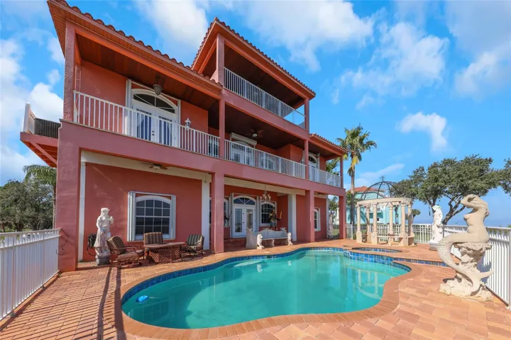 Waterfront. luxury property overlooking the gulf. Take a vantage of the unique opportunity to live in the only double gated community in Pasco County. This four-bedroom four bathroom three-story home it’s perfect for any size family that loves to entertain. Enjoy swimming in an open space pool overlooking the water. Bubba