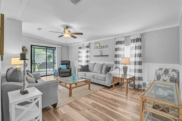 Discover your own slice of paradise and you owned the land, NO LOT FEES! This beautifully updated and partially furnished 2-bedroom, 2-bath ranch-style home sits on one of the largest corner lots in the desirable Ridgewood Oaks, a 55+ gated community with 24-hour security. Surrounded by lush landscaping, the property features a majestic oak tree that offers exceptional privacy and natural shade.