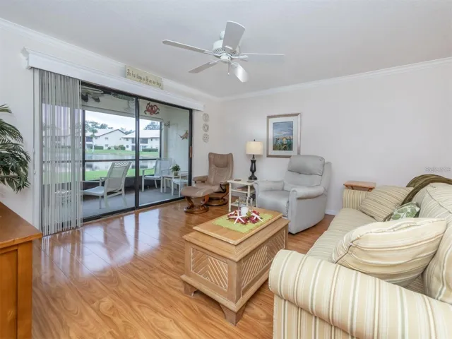 TRANQUIL LONG LAKE VIEWS – FULLY RENOVATED -TURNKEY FURNISHED! Enjoy peaceful waterfront living in this beautifully renovated FIRST FLOOR, 2-bedroom, 2 bath Condo offering a rare blend of comfort, style & convenience. Inviting open concept kitchen featuring custom soft close solid wood shaker cabinets, granite countertops, a breakfast bar, & a pantry. Finished with wide plank hardwood style laminate flooring, plantation shutters, and crown molding for a refined look. Both bathrooms have been tastefully upgraded, and hot water & refrigerator are newer for peace of mind. Relax on the lanai showcasing the sparkling water view, nature & wildlife for a outdoor retreat. Just 3 miles to HISTORIC VENICE DOWNTOWN, Gulf beaches, fine dining, shopping, golf, sunsets & boating. An unbeatable location for a vacation oasis, Investor or fully time living. 1-month rentals allowed. Community offers 3 HEATED POOLS, private storage for each unit, Carport with tandem parking for two & guest parking. Turnkey furnished – move right in & start enjoying the Florida lifestyle. BEST VALUE in Mission Lakes! Schedule a showing to see this hidden gem!