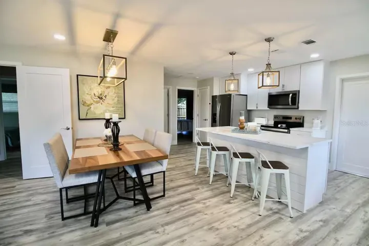 Welcome to this stunning, turnkey villa-style duplex, beautifully furnished and thoughtfully decorated throughout. Perfectly situated on an oversized corner lot in the desirable Southgate neighborhood, this exceptional property is just 6 miles from world-famous Siesta Key Beach and there was no water intrusion from the 2024 hurricanes! Each side of the duplex offers two spacious bedrooms, two modern bathrooms, and a versatile den currently furnished as a third bedroom. The home has been tastefully updated with brand-new appliances, quartz countertops, luxury vinyl flooring, and high-end furnishings, making it truly move-in ready. Both units feature private front and rear courtyard spaces, ideal for outdoor relaxation or entertaining. Each side also includes a generous laundry room located inside its own one-car garage. The garages are currently set up as game rooms, but can easily be converted back to traditional garages as the seller is the owner/operator of Statewide Garage Doors. Currently operating as a vacation rental, showings must be coordinated around guest occupancy. Please contact the listing agent to confirm availability for showings. While the property is being sold fully furnished and turnkey, the owner may retain a few select items of sentimental value. This is a rare opportunity to own a multi-generational residence or an income-producing investment. Live in one unit and rent the other, or maximize rental potential on both sides—this versatile property offers endless possibilities. Don’t miss out on this exceptional opportunity!