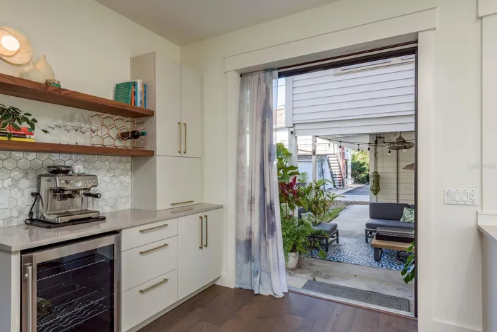 Like-new 2025 residence in the highly desirable Historic Uptown neighborhood, blending classic architectural character with modern comfort. A covered front porch with gas lantern welcomes you into a light-filled interior featuring approximately 9.5-foot ceilings, engineered white oak flooring, and tall interior wood doors throughout. The main residence offers three bedrooms and three full bathrooms, including two en-suite bedrooms—one of which is the primary suite with walk-in closet and well-appointed bath. Kitchen and living spaces are designed for everyday living and entertaining, complemented by gas appliances, a tankless gas water heater, and a whole-house water filtration system. Additional features include hurricane-rated impact windows and doors, second-floor washer and dryer, and thoughtful modern systems throughout.