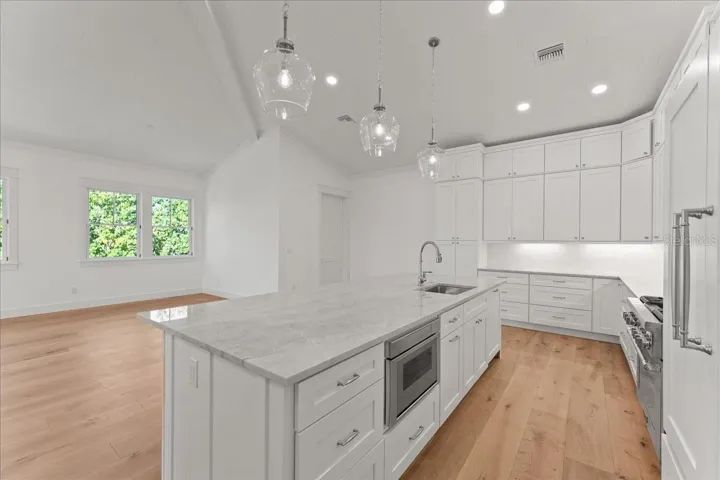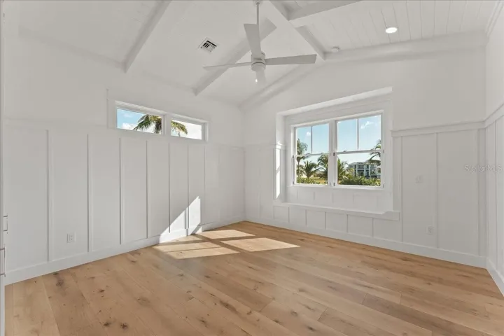 This thoughtfully designed residence features 5 bedrooms, 4.5 bathrooms, and over 3,000 square feet of living space, highlighted by 13-foot vaulted tongue-and-groove ceilings throughout the main living areas. Built with exceptional quality and efficiency, the home includes spray foam insulation, Andersen impact windows and front door, durable Hardie board siding, and Azek trim for long-lasting coastal performance and peace of mind.
