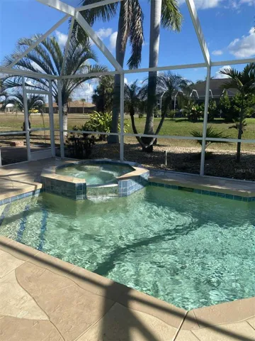 Step outside to a tropical escape where the stamped concrete extends through the pool patio, tying the space together beautifully. Swaying palms and lush shrubs surround the screened enclosure, creating a private, resort-like setting. The pool and built-in spa with bubbler invite relaxation day or night. Completing the home is a two-car garage with split doors, one side extended for added length, finished with epoxy floors for a clean, polished look. For added peace of mind, the seller has already completed a home inspection, offering buyers extra confidence and convenience. This is a home designed for comfort, connection, and easy Florida living.