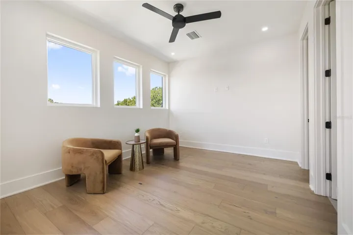 Welcome to refined coastal luxury in the heart of coveted Davis Islands. This brand-new 6-bedroom, 5-bathroom residence spans 3,986 square feet and blends elevated design with modern convenience at every turn. Real oak wood floors flow throughout the home, setting a warm, timeless tone, while a striking fireplace centerpiece anchors the main living area and opens to a poolside balcony overlooking your heated saltwater pool and spa – perfect for effortless indoor-outdoor living. The gourmet kitchen is a showpiece, designed for both entertaining and everyday indulgence. It features a 48-inch gas Café range, an expansive island, and a fully equipped butler’s pantry complete with a built-in Bosch espresso machine. The second floor also offers two versatile bedrooms ideal for guest suites or home offices, a guest bathroom, and a dedicated AV closet. Retreat to the third floor, where four bedrooms each enjoy their own en-suite bathroom, alongside a conveniently located laundry room. The primary suite is a true sanctuary, boasting a private balcony with breathtaking views of the Tampa skyline, dual walk-in closets, and a spa-inspired bathroom with dual vanities, a frameless glass shower, and a standalone soaking tub. The lower level provides flexible space ideal for a private gym or additional storage, along with a spacious 4-car garage. Built for both security and seamless living, this smart home is equipped with cameras, speakers, and surround sound throughout, all controlled via a secured Control4 system. Thoughtfully designed, impeccably finished, and ideally located, this exceptional Davis Islands home offers luxury living at its finest.