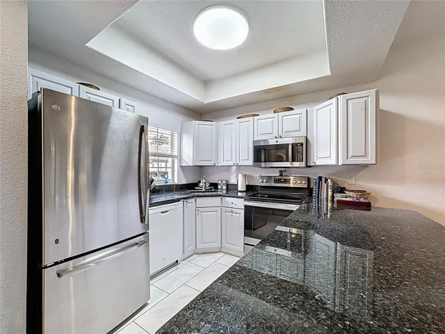 Located in the highly sought-after Palmer Ranch area, within the amenity rich, gated resort-style community of Pinestone, this beautifully updated move in ready, main-floor, 2-bedroom, 2-bath split-bedroom condominium is just minutes from the world-famous Siesta Key Beach. This thoughtfully designed residence features custom soft-close cabinetry, stainless steel appliances, and granite countertops; a quality upgrade rarely found compared to standard thermafoil finishes. Luxury vinyl flooring throughout creates a seamless, modern feel and enhances the open floor plan. The spacious primary suite offers a walk-in closet and a private, tiled ensuite bath, while the guest bedroom and bath provide comfort and privacy for visitors. Enjoy your morning coffee or unwind with a good book on the enclosed lanai, offering peaceful views and added living space. Additional highlights include inside laundry with a brand-new stackable washer and dryer, private storage area, storm shutters, ample guest parking, and a private assigned carport conveniently located just outside your front door. The unit has also been replumbed, providing peace of mind for years to come. Residents of Pinestone enjoy an unparalleled resort-style lifestyle with premium amenities, including a state-of-the-art fitness center, pickleball courts, lighted tennis courts, basketball court, junior Olympic-sized pool and spa, billiards room, shuffleboard courts, spa, and a banquet hall for gatherings. Relax by the fire pit, grill with friends in the barbecue areas featuring new poly furniture, or enjoy movie nights in the private theater with stadium seating and popcorn machine. Water, Sewer, Trash, exterior and grounds maintenance, and exterior building maintenance are all included, offering true low-maintenance living. Ideally located near Potter Park, the Legacy Trail, beaches, downtown Sarasota, shopping, and dining, this condo delivers the perfect blend of convenience, comfort, and Florida lifestyle. Schedule your private tour today!