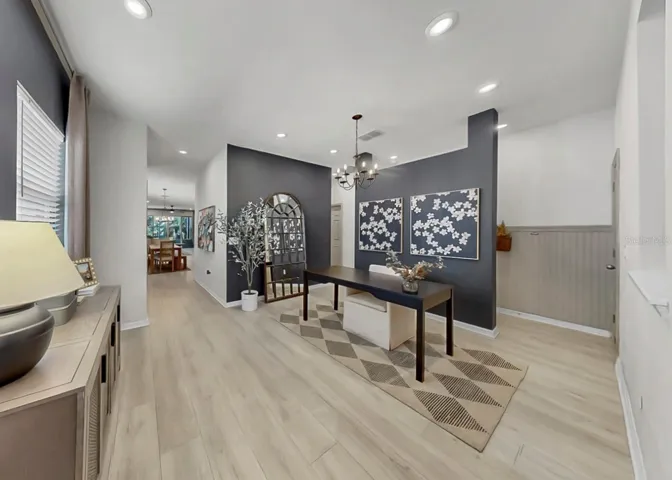 **Former David Weekly Waterset builder model & popular Queensgate floorplan**. Lots up upgrades including quartz countertops in the kitchen & bathrooms, 42-inch kitchen cabinets, dry bar, security system, wired for surround sound in family rm, large extended covered lanai great for outdoor BBQs, entertainment & enjoyment along with 3 large windows in the garage allowing lots of natural light with a combination of park and water views. Covered front porch with swing. This 3 BD 2 BA 2-car garage home with fenced yard has lots of elegant laminate flooring, stainless steel and natural gas appliances, kitchen island with breakast bar, built in LED fireplace in the family room along with built in shelves in both guest bedrooms and room for a pool (plans available upon request). The home is situated in a prime location directly across the street from a large pond adjacent to a main amenities center which features two pools, pickleball, basketball & sand volleyball courts and playground. The amazing award-winning community of Waterset boasts resort style amenities inluding 4 pools (lap lanes & waterslides), 3 fitness centers, game room, tennis, pickleball, basketball courts, sand volleyball, a 20 acres outdoor sports complex, more than 10 parks & playgrounds, 12 miles of walking trails & dog parks. Waterset is also in close proximity to a plethora of shops, restaurants, schools, churches, daycare centers, I-75 and just minutes to the beach!