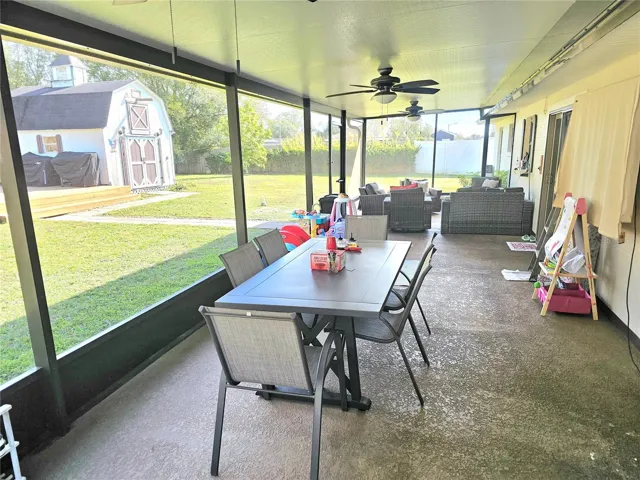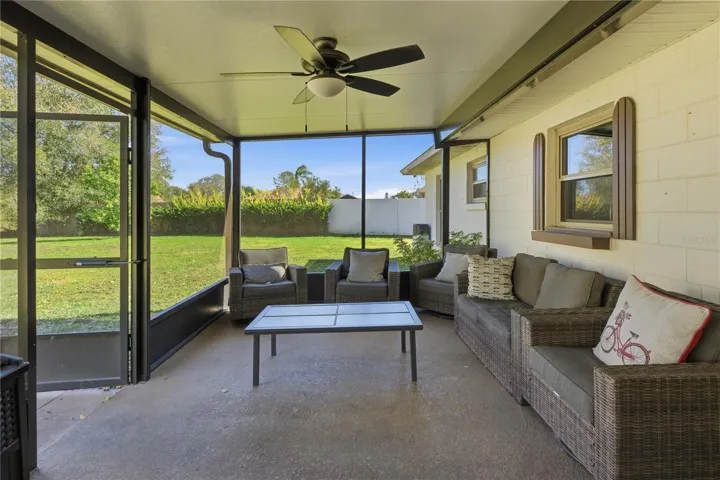 One or more photo(s) has been virtually staged. This is the home you’ve been looking for! Nearly Half-Acre Property – with HUGE, completely fenced backyard, large, covered, screened patio, pool and deck, and NO REAR neighbors – creates a wonderful environment for entertaining family or guests! So many pluses: Brand-new tile flooring, roof replaced in 2019, primary shower redone, AC Replaced 2022, windows replaced 2023! Store your outdoor equipment, bikes, and lots more in the spacious storage shed. Super-sized driveway provides room for several vehicles. Schedule a showing now to tour this unique home! Please note: Tesla charging system/station does not convey.