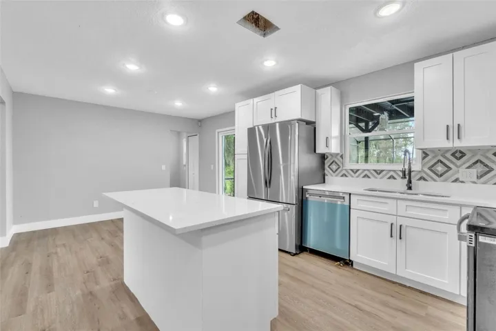 Welcome Home to 2501 India Blvd! This 3 Bedroom/2.5 Bathroom Pool Home is awaiting a new owner! Complete with an entirely renovated interior, Roof (2021), A/C (2019), this home is move-in ready! Enjoy the ultimate Florida lifestyle with lake views and pool vibes. Step inside to discover a bright open floor plan featuring luxury vinyl plank flooring, recessed lighting, and large picture windows that fill the home with natural light. The designer kitchen boasts brand-new stainless steel appliances, quartz countertops, a center island, and stylish backsplash—perfect for entertaining or family gatherings. The first floor offers expansive living and dining areas along with a guest suite or office. Upstairs, the spacious primary suite features a walk-in closet and a beautifully tiled en-suite bathroom. Each additional bedroom is generously sized with updated fixtures and finishes throughout. Outside, enjoy your private screen-enclosed pool area with plenty of deck space—ideal for relaxing or hosting weekend get-togethers. The oversized three-car garage and long driveway provide ample parking. Situated across from scenic lakefront views, this home perfectly blends comfort, space, and lifestyle. Conveniently located near I-4, top-rated schools, shopping, and dining, this home is just minutes from Wekiva Springs, Orlando, and Daytona Beach. Come see all this listing has to offer! Call Today to schedule your private showing!