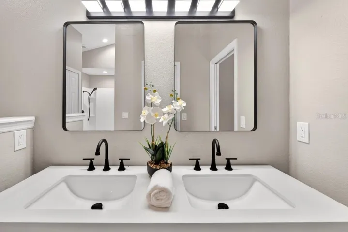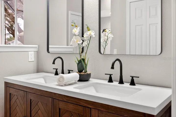 The stylish kitchen flows seamlessly into the main living areas and showcases sleek cabinetry, quartz countertops, and stainless-steel appliances—ideal for both everyday living and hosting guests. The home offers three spacious bedrooms and two fully updated bathrooms, each featuring professionally reglazed tile for a like-new appearance, durable protective coating, new vanities, new toilets, and all-new bathroom fixtures and lighting.