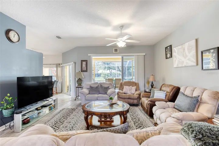 Beautiful 3-bedroom, 2-bath Pool Home with a 2-car garage, situated on an oversized lot in the highly desirable Ormond Lakes community. From the moment you arrive, you’ll appreciate the meticulously manicured landscaping and fresh exterior paint. Inside, the expansive split-floor plan offers volume ceilings and an open, airy feel throughout. The eat-in kitchen features new granite countertops and backsplash, an expansive breakfast bar, and a dedicated pantry. The primary suite is a true retreat, highlighted by a coffered ceiling, his-and-her closets, a walk-in shower, and a double-sink vanity. Two well-appointed guest bedrooms are complemented by a remodeled guest bathroom with a walk-in shower. Sliding glass doors from the living area lead to a generous 350+ sq ft covered lanai overlooking the fully screened pool enclosure. A large .71-acre green space abuts the rear of the property, offering added privacy and peaceful views. Roof 2024 / AC 2001 / HWH 2001. Recent upgrades include LVP flooring in the living room and a new primary bath vanity. See full upgrades list for additional details. Ormond Lakes features several miles of walking and biking sidewalks, newly updated clubhouse, tennis, fishing pier, community pool, easy access to I-95, and is located several minutes from Tomoka State Park. Square footage from tax rolls. All info intended to be accurate but can’t be guaranteed.