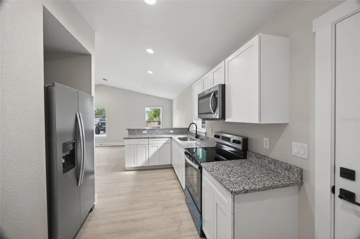 NEW CONSTRUCTION! This stunning 4-bedroom, 2-bath home, built with solid concrete block construction, offers modern comfort and style on a desirable corner lot. The open layout features vaulted ceilings that create an airy, spacious feel throughout, complemented by durable and stylish luxury vinyl plank flooring. The generous primary suite provides a peaceful retreat, while each bedroom includes upgraded ClosetMaid systems for excellent storage. The kitchen is a true standout, featuring elegant granite countertops, solid wood cabinetry with soft-close drawers, and a large pantry to meet all your culinary needs. Enhanced wood window sills, upgraded doors and trim, and ceiling fans throughout add to the home’s quality and attention to detail. Outside, a dedicated grilling slab makes entertaining easy, and the fully fenced backyard provides privacy and functionality with a newly installed DuraFence and matching rails. Conveniently located near downtown Ocala with quick access to major highways, local amenities, parks, and green spaces, this home offers the best of modern living with everyday convenience. Photos shown are of the actual property. Don’t miss the opportunity to make this beautiful new home yours, schedule your showing today.